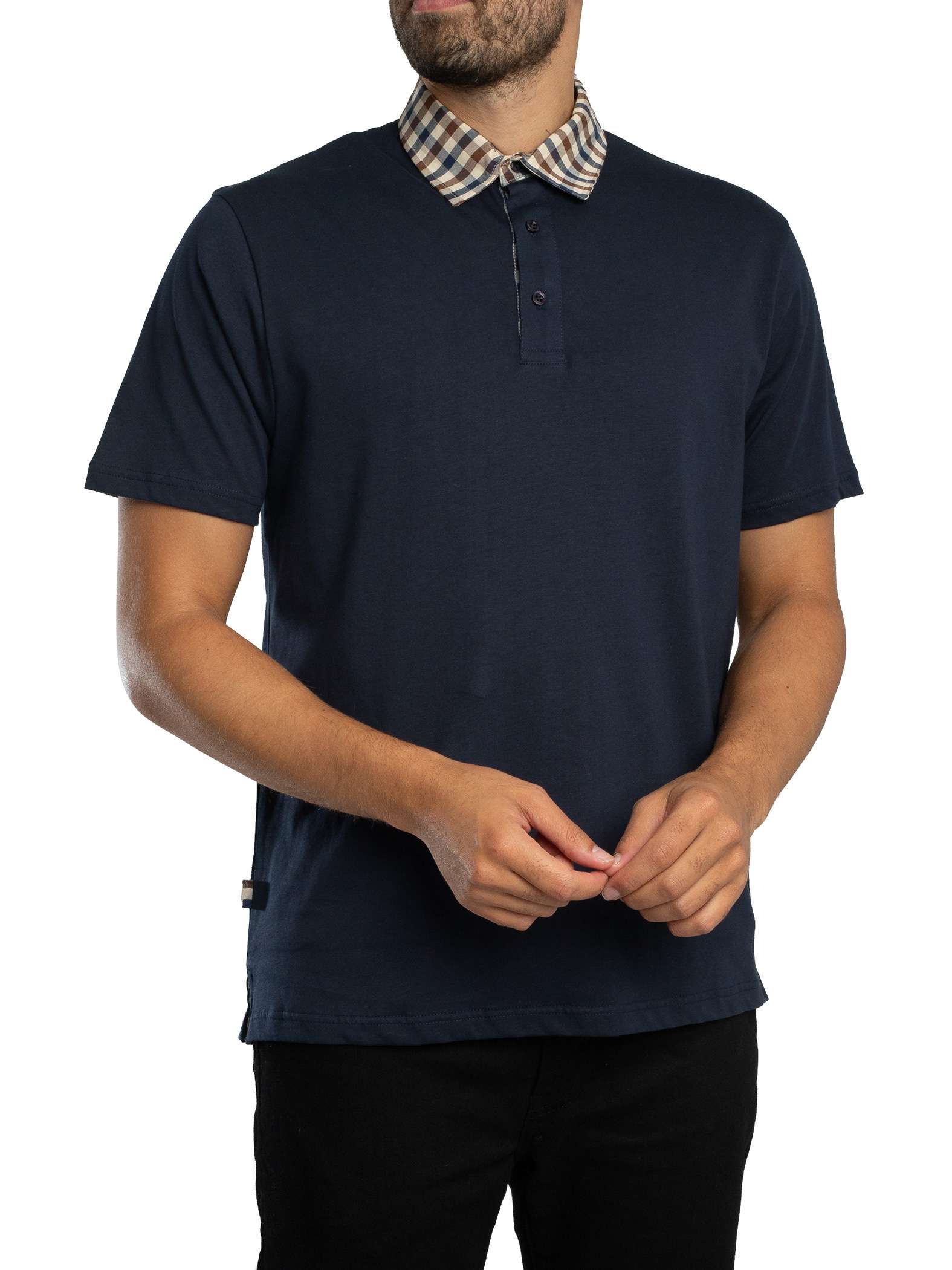 Aquascutum Club Check Collar Polo Shirt - Navy