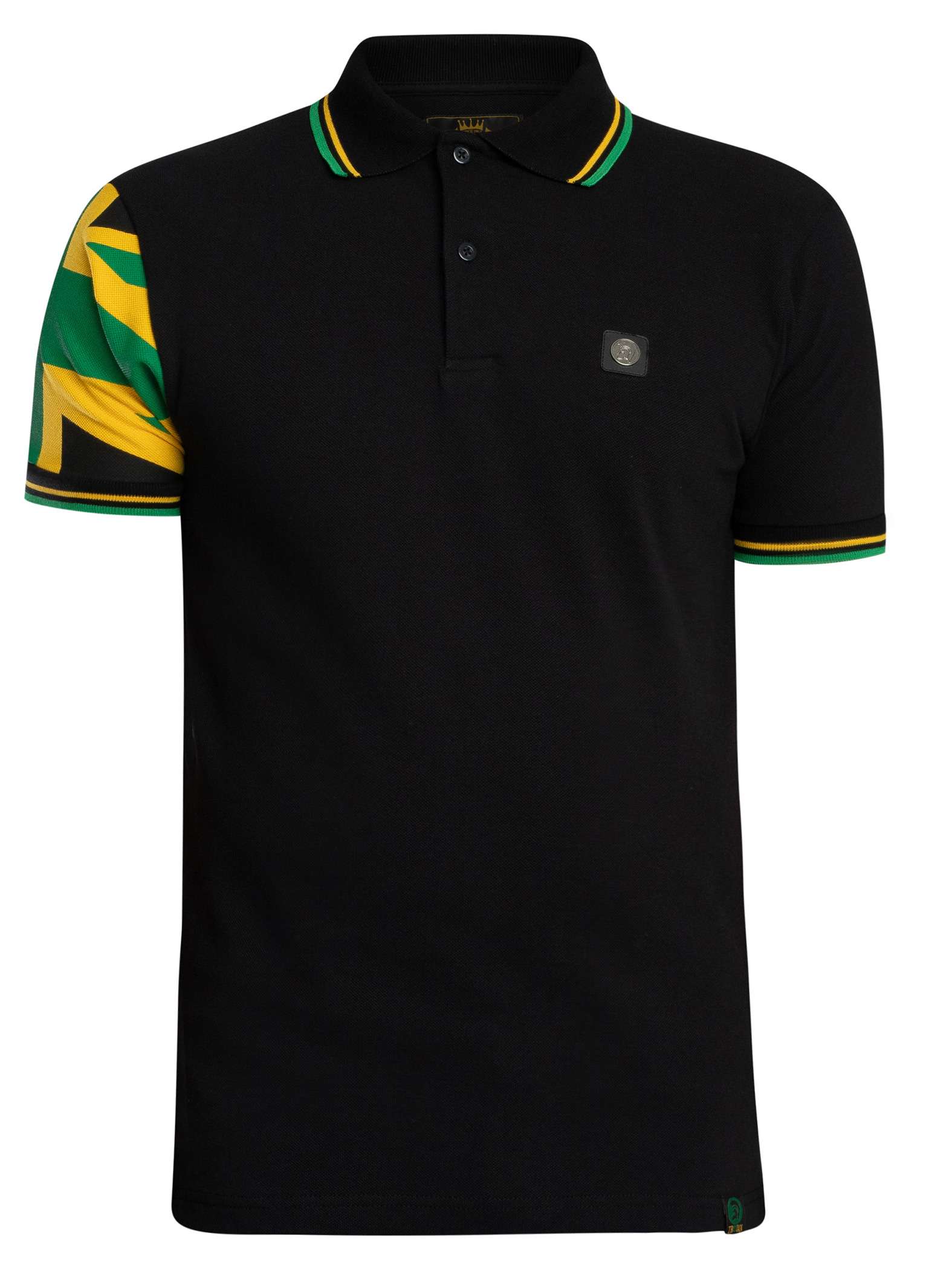 Trojan Flag Sleeve Pique Polo Shirt - Black