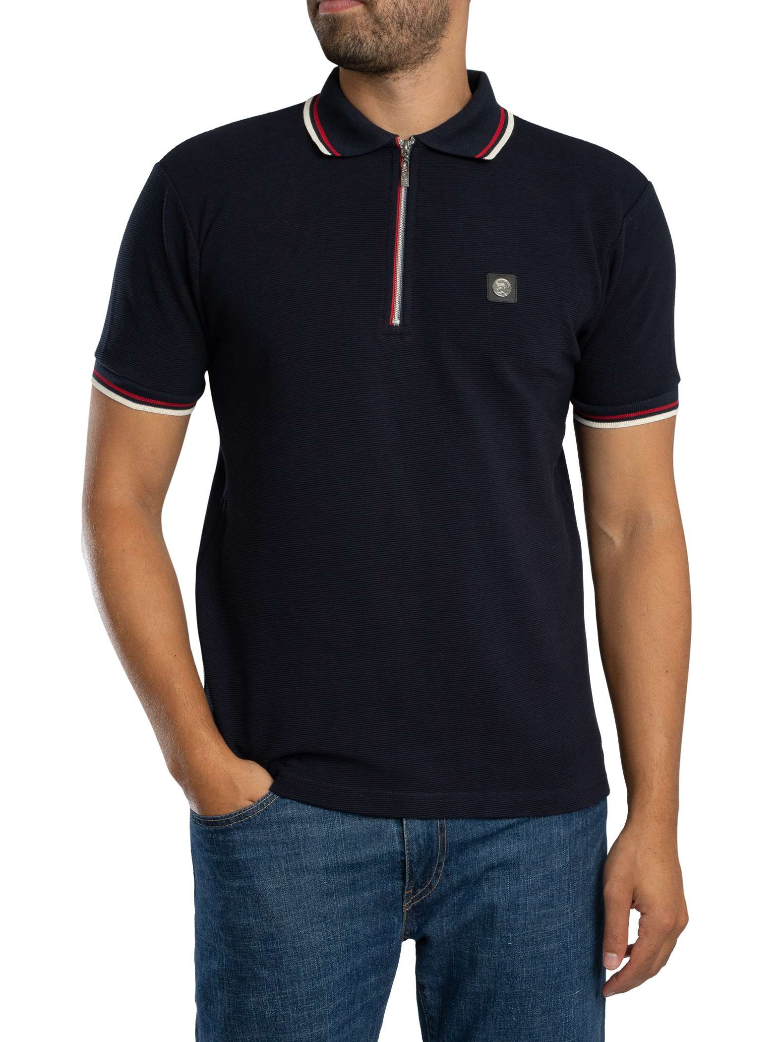 Trojan Ottoman Rib Zip Polo Shirt - Navy